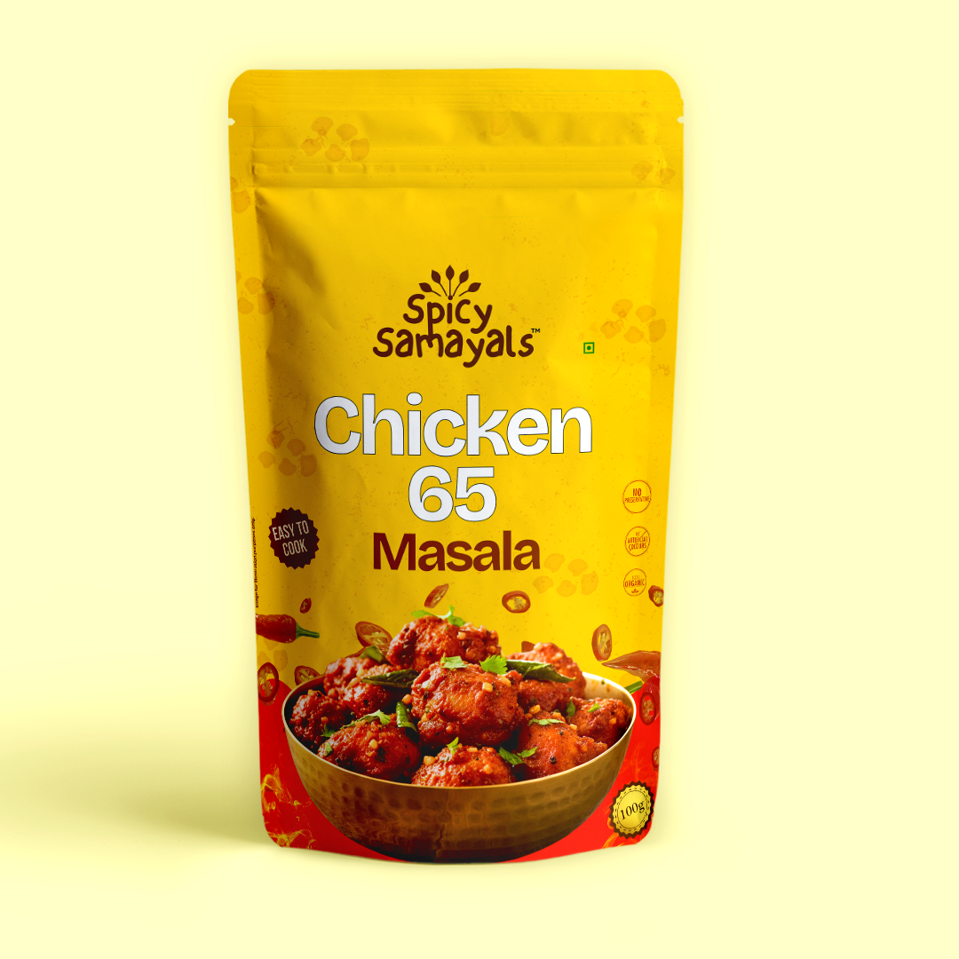 Spicy Samayal’s Chicken 65 Masala is a bold, flavor-packed blend of classic South Indian spices crafted to recreate the iconic street-style Chicken 65 at home. Spicy, tangy, and aromatic, this masala delivers the signature crunch, deep red color, and mouthwatering heat that make Chicken 65 a timeless favorite.